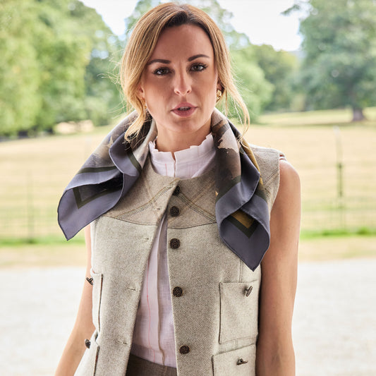 'By the Castle Gate' Silk Scarf: Hunter & Cobbled Honey