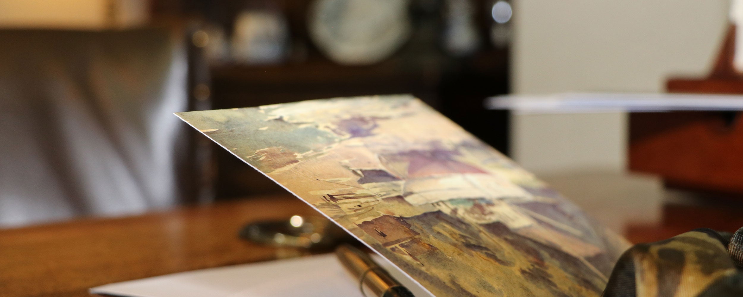 What's more perfect than a beautiful piece of artwork transformed into a 5x7" card, perfect for that handwritten message to a dear friend... accompanied by a lovely gift wrapped in a scene of the English countryside. Taking gifting to another place.