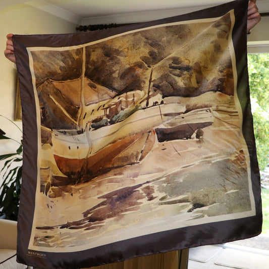 And here the magic begins as these beautiful watercolour paintings are reproduced on sumptuous quality silk to make fabulous scarves. For this season, we've introduced a smaller version of our popular 900x900mm. Each scarf has a delightful, handrolled hem giving that stability and drape just perfect for completing your 'look'.