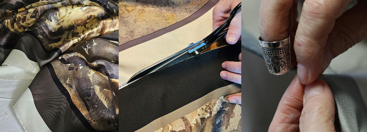 The first batch of scarves to arrive were all handrolled by mother, who had done this numerous times during her life as a seamstress, although not quite so many in one go before! All our scarves will be rolled by hand, another of our high quality standards.